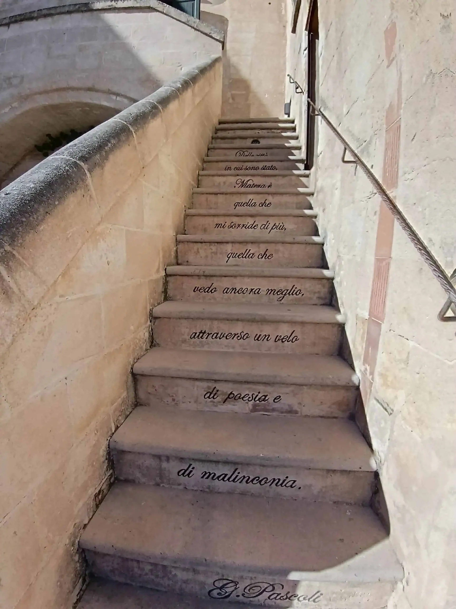 V Mateře jsme ihned zamířily na vlakové nádraží. Vchod z jedné strany byl zavřený. Budovu jsme obešly a to i přesto, že jsme neviděly žádné koleje a tudíž nádraží vypadalo, že to ani nádraží není (koleje jsou pod zemí). Vstup na druhé straně budovy vypadal podobně, to, že se dveře pod mou rukou pohnuly, mě upřímně překvapilo. Až tak, že jsem je otevřela až na druhý pokus. Proti nám byla pokladna a v pokladně paní. Zrovna telefonovala. Počkaly jsme, to už jsme měly natrénované. Na naši otázku vysypala několik odpoledních vlaků, cca po hodině. Já (možná s otevřenou pusou údivem) jsem se ještě ujistila, že se přesedá ve městě Altamura. Tak u některých vlaků ano, ale vlaky po 3. a po 4. hodině prý jedou přímo. Údiv už jsme skrývat nedokázaly. Hned jsme chtěly lístky, než si to rozmyslí nebo řekne, že to byl vtip. Začaly jsme počítat v kolik tedy pojedeme. Ale ani to nebylo nutné, lístek je stále stejný, jen jeden, naskenuje se před vstupem na nástupiště, nezáleží který vlak vybereme. Tolik pozitivních informací najednou… To si zasloužilo kávu a svačinu na oslavu. A mohly začít toulky Materou.