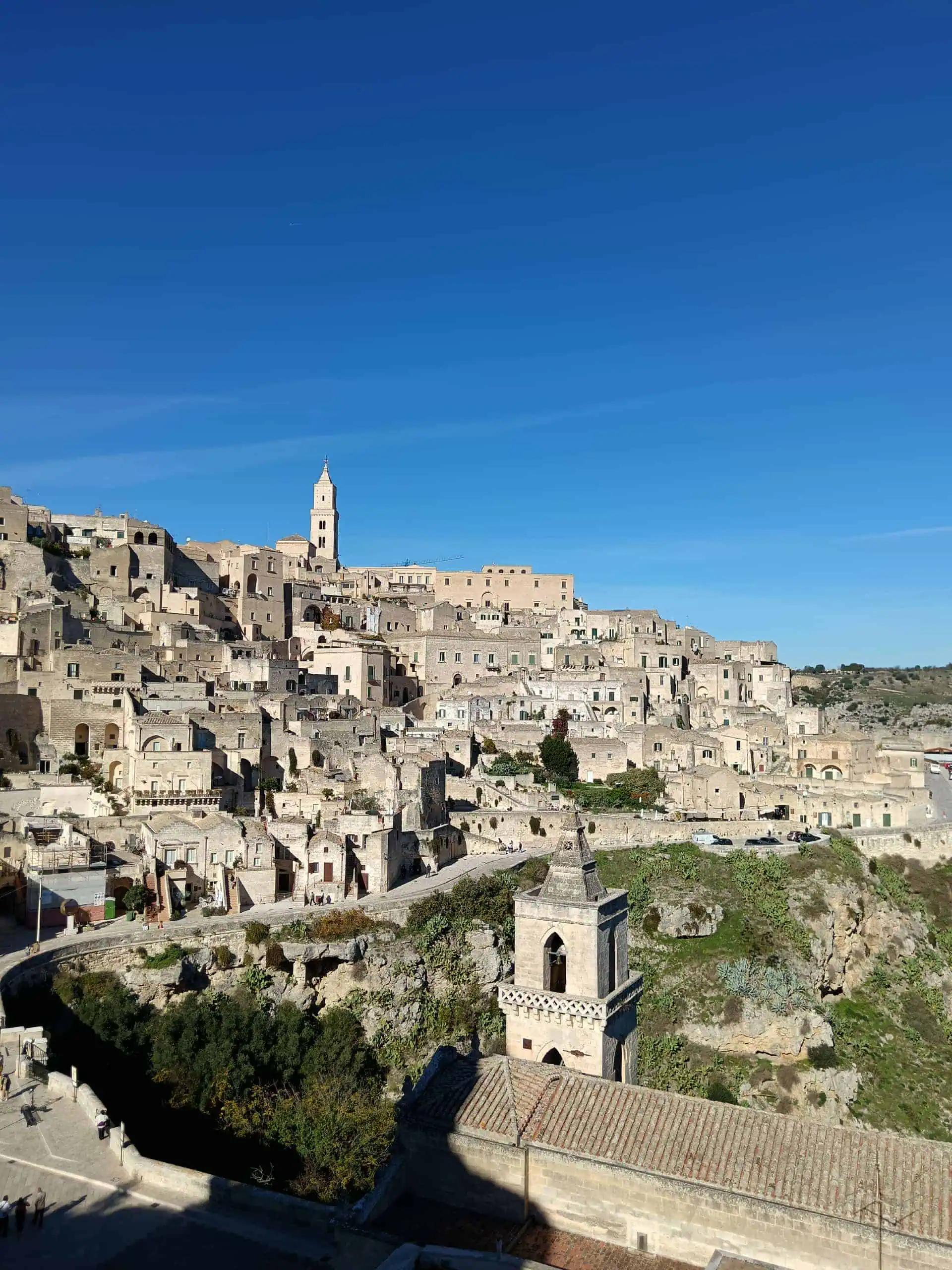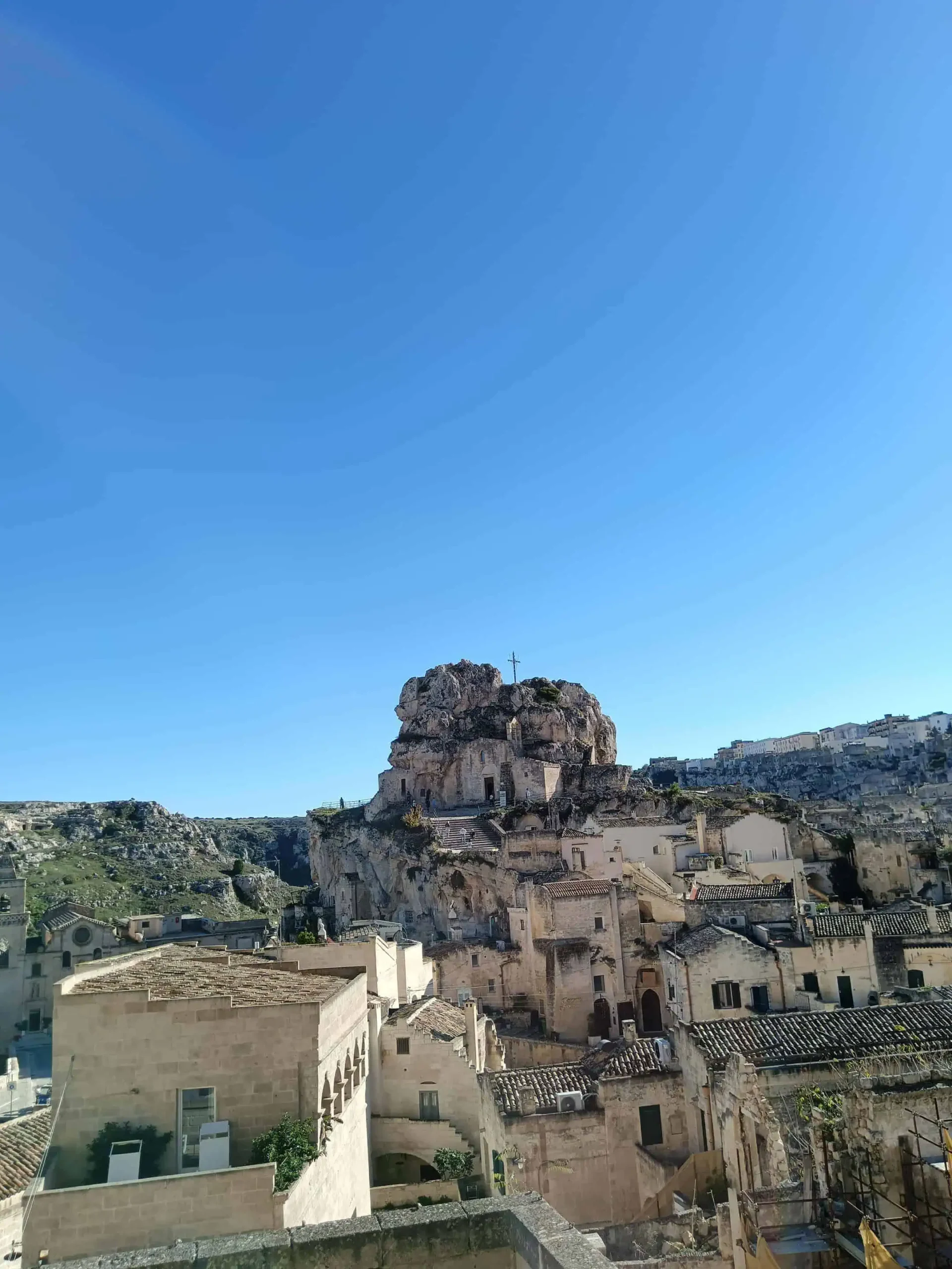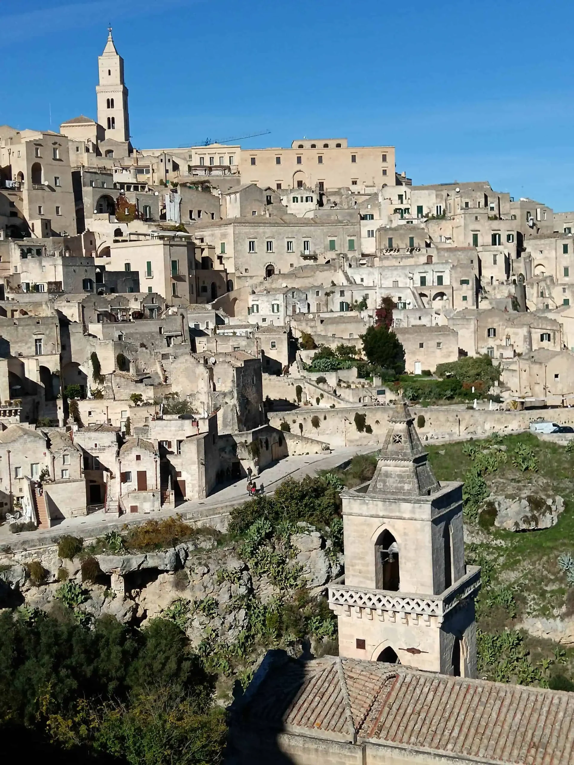 Na cestu směrem do Matery jsme relativně snadno našly přímý autobus. Autobus jel ráno, v příznivou hodinu. Jel z letiště. Na letiště nám jel autobus kousek od našeho “baráku”. Tak to řekly mapy na Googlu. Zastávku u baráku jsme ráno našly v pohodě. Bylo tam uvedených pár čísel různých autobusů. Naše, trochu podivné 95–4, tam nebylo. Nevím, jak vás, mě třeba vždycky uklidní, když chci jet na letiště a na zastávce stojí někdo s kufry (moje logika tehdy říká, že určitě jede také na letiště). A protože tam právě taková dvojice byla, byly jsme v klidu. Čekaly jsme. Dvojice začala být nedočkavá. Navázala hovor s místním postarším mužem. Z mého pohledu opatrně s takovými kontakty.-) Pán dvojici řekl, že na letiště jede autobus č. 16 (ten měl dokonce i svůj jízdní řád na této zastávce) a že si musí koupit lístky v tabáku. Mladík utíkal do tabáku. Přiběhl s lístky. Nám se do tabáku běžet nechtělo, pro formu jsme se podívaly na rozpis autobusu 16. Příjezd na letiště v 9.58. Nám odjížděl spoj do Matery v 9.15. Evidentně to nebyl autobus pro nás. Nebudu zastírat, že nás to také pomalu začínalo znervózňovat. Ale naštěstí během chvilky přijíždí autobus, nemá žádné číslo. Má jen nápis “Aeroporto”, tedy letiště. Nastupujeme, kupujeme lístky u řidiče. Za zády slyšíme diskusi: ano, tento také jede na letiště, zkuste se zeptat, ale vy máte lístky na jiný… Tak snad jim to letadlo neuletělo. S námi nejeli, čekali na šestnáctku.